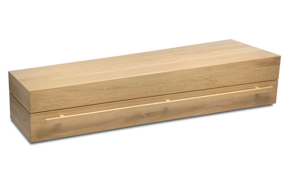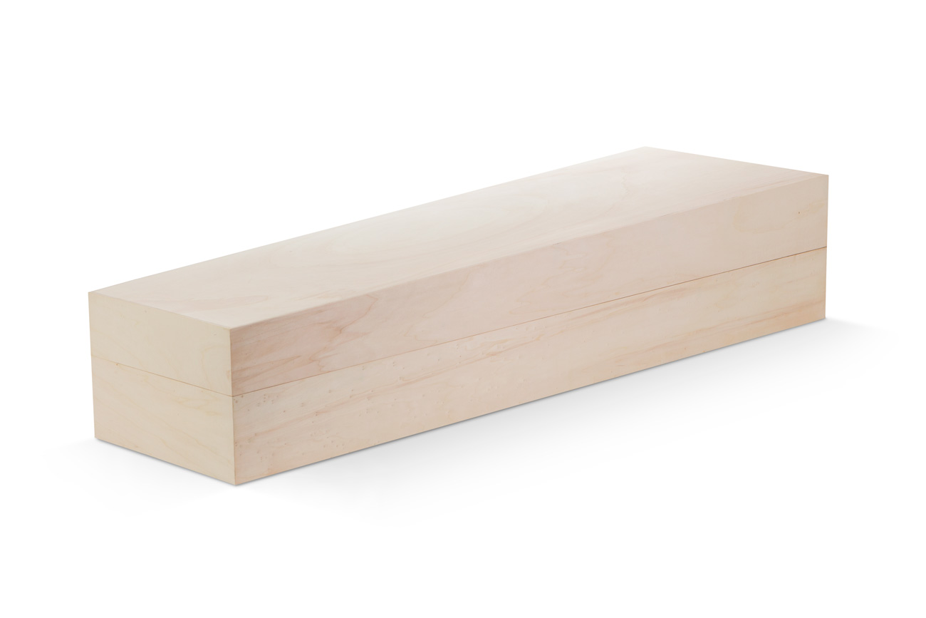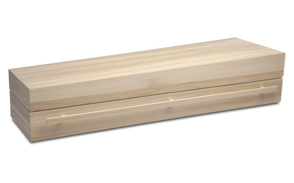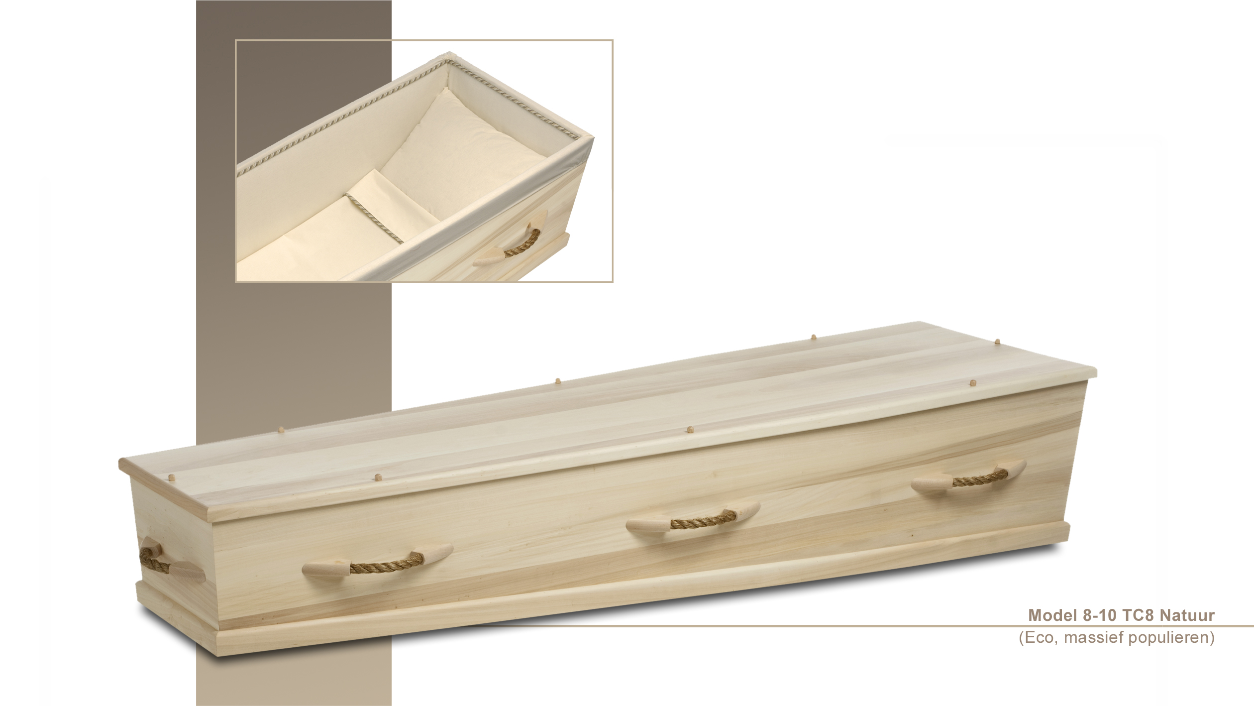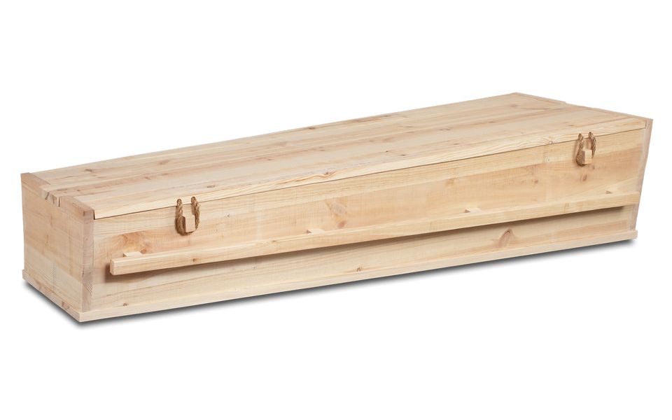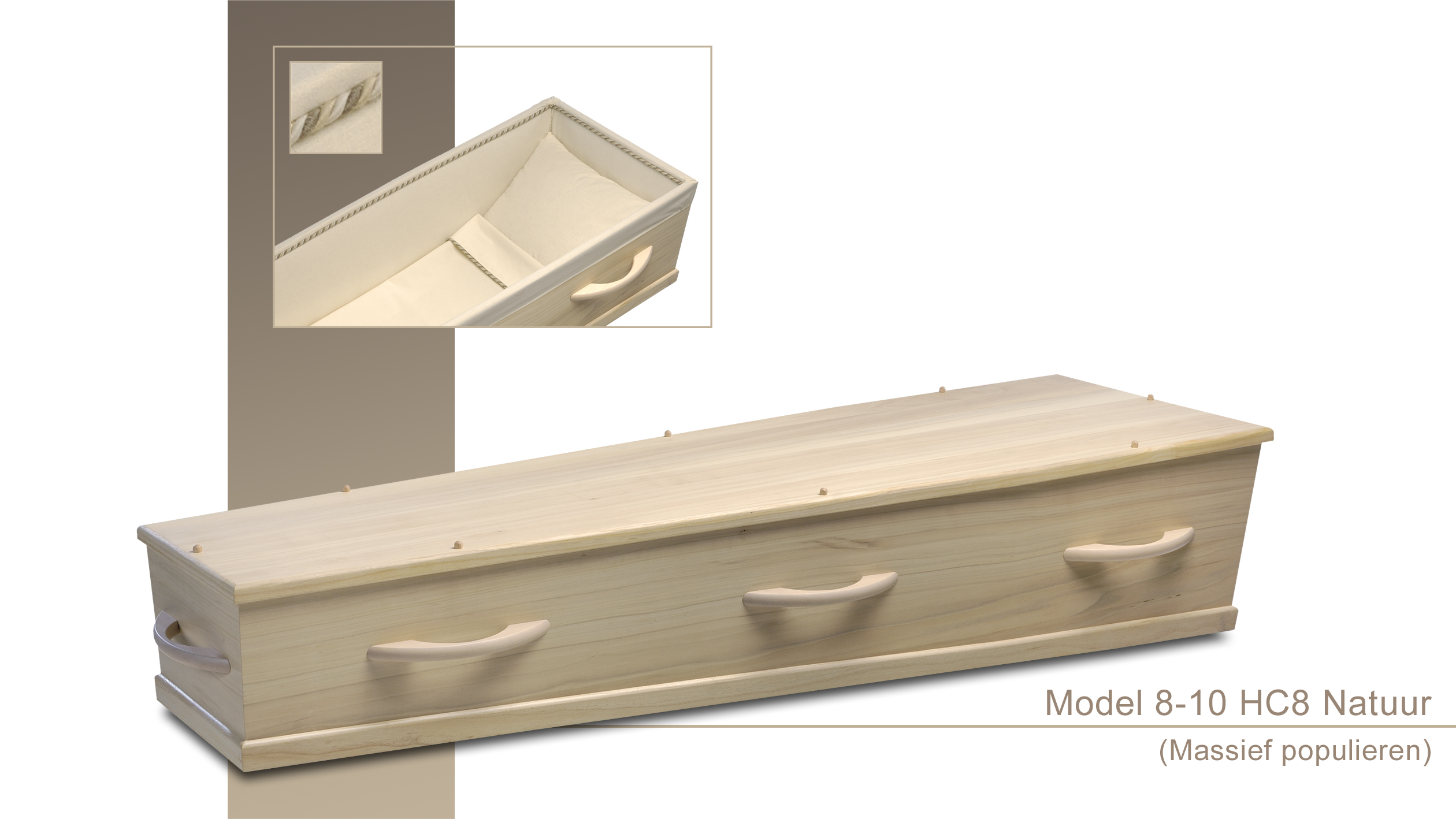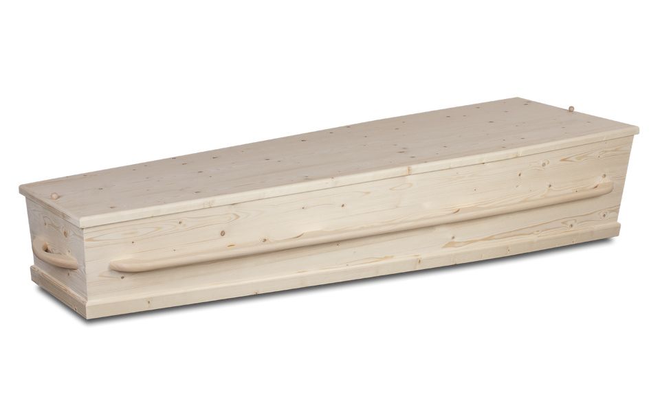 Massief populier. 100% bioafbreekbaar dus geschikt voor natuurbegraafplaatsen. Geen metaal. Bekleding: ongebleekt katoen, in de kist geknoopt.
