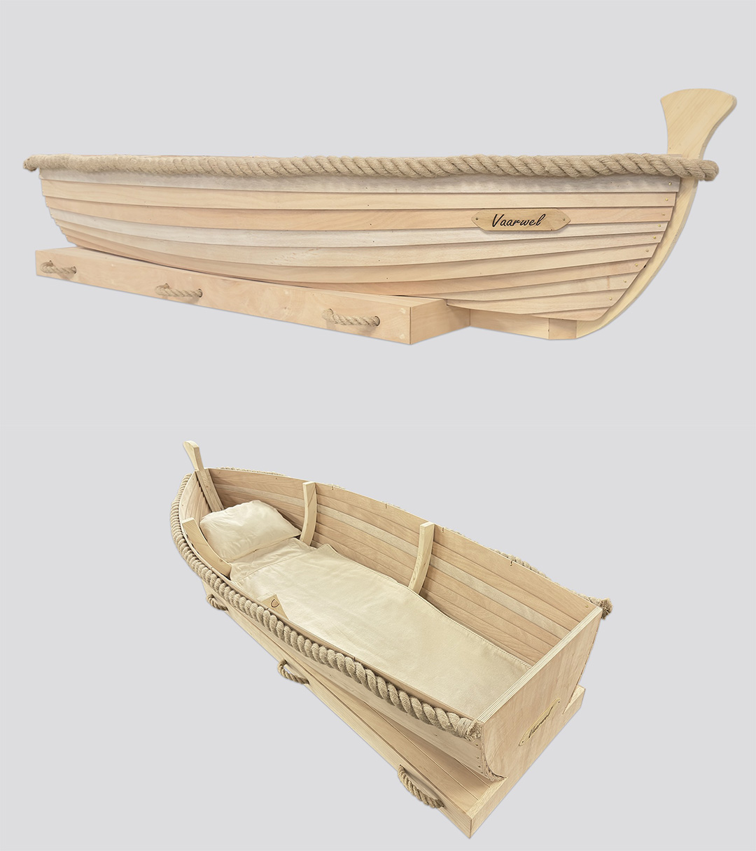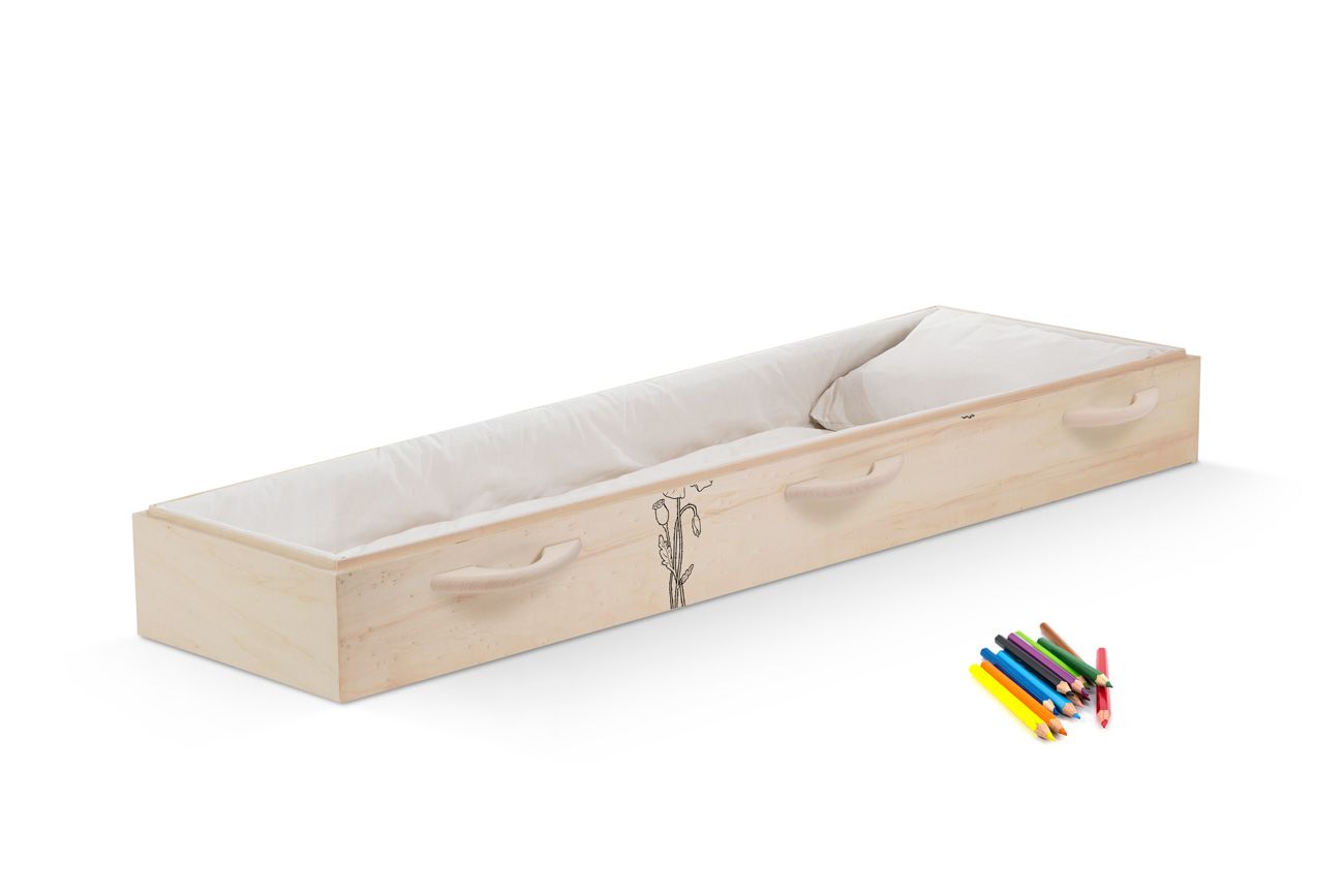 Massief populierenhout. Bekleding: ongebleekt katoen.