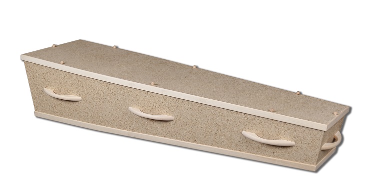 Eindelijk een kist gemaakt van het oerhollandse, milieuvriendelijke gewas vlas. De teelt ervan was zo goed als verdwenen, maar komt door deze kist terug. Een uitstekende zaak! Want vlas is bijzonder makkelijk: groeit zonder pesticides op de moeilijkste gronden, kan tegen droogte en gebrek aan zon, is eenvoudig te verwerken. De fabrikant (Bogra) perst platen van de stengels en de wortels, het bindmiddel is olie van de zaden. Deze uitvoering is bekleed met een papieren folie die wel met een beetje lijm is geplakt, maar hieronder vindt u het model zonder folie, en dus 100% zonder lijm. Deze kist is ook een van de goedkoopste dus vraag er gerust naar aan onze uitvaartleiders!