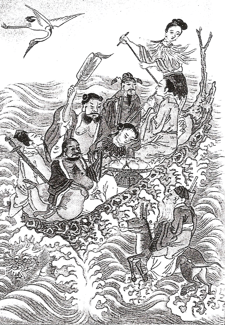 Met name de hieronder vermelde sexuele praktijken zouden de indruk kunnen wekken dat onsterfelijkheid alleen voor mannen was weggelegd. Dat is echter niet zo. Reeds in de vroege literatuur is sprake van vrouwelijke onsterfelijken. In de latere literatuur figureert de groep van de zogenaamde ‘Acht Onsterfelijken’ —overigens niet steeds uit exact dezelfde personen bestaand— die zouden leven op het Penglai eiland, ergens in de Oostelijke Zee. Op dit eiland heerst geen winter, magisch fruit groeit aan de bomen, kommen en bekers worden nooit leeg hoeveel men er ook uit eet of drinkt. Tot die groep van acht onsterfelijken hoort één vrouw, He Xiangu, de ‘Onsterfelijke Vrouwe He’, in de afbeelding hieronder aan het roer van het schip.