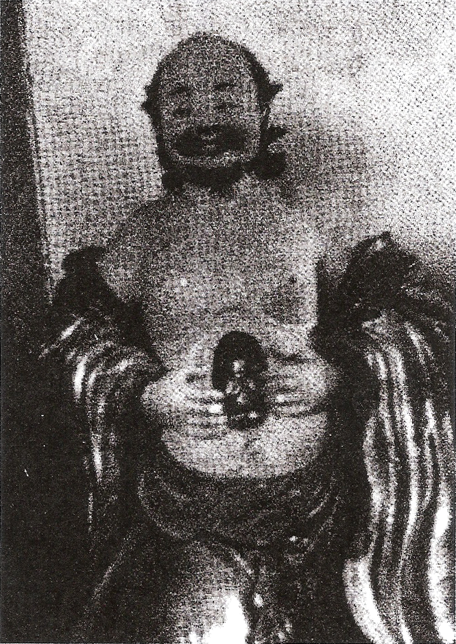 Een luohan of arhat laat zien hoe het goddelijk embryo in hem groeit (Ontleend aan Needham, Science and Civilisation in China, Vol. V, Pt. 5, Cambridge 1983)