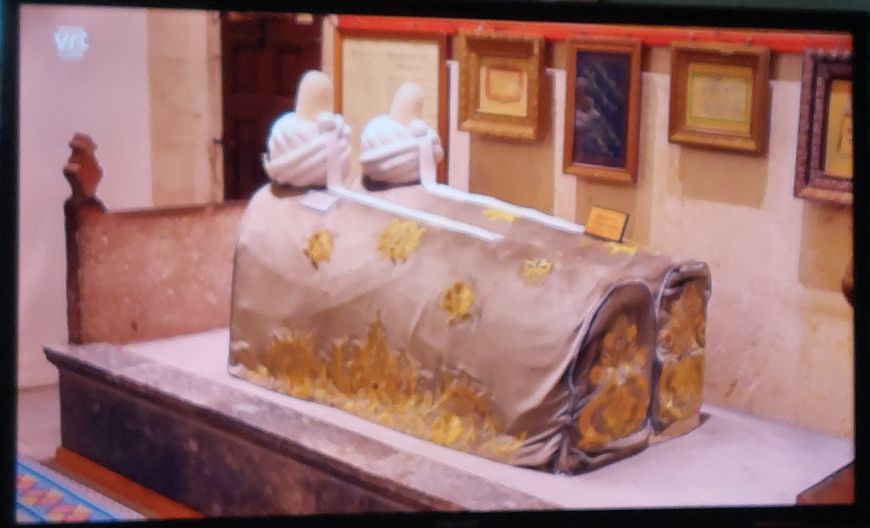 De sarcofaag is leeg, het lichaam bevindt zich in de grond eronder.